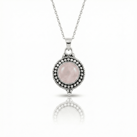 Colgante 'Eos' de Cuarzo rosa y Plata de Ley 925