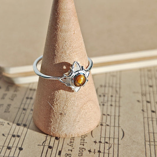 Anillo Nudo de Bruja "Wicca" con Ojo de Tigre - Plata de Ley 925