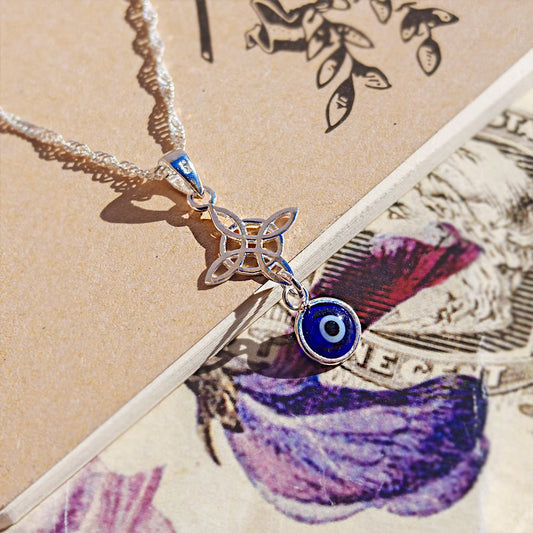 Colgante Doble Protector Nudo Bruja & Ojo Turco - Plata de Ley 925