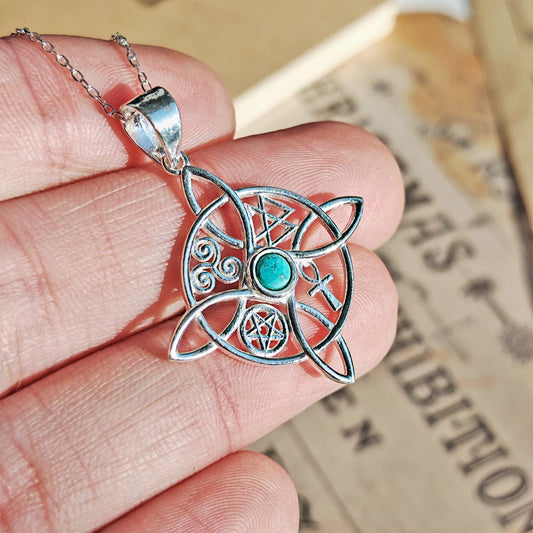 Colgante Nudo de Bruja con Howlita y Símbolos Sagrados - Plata de Ley 925
