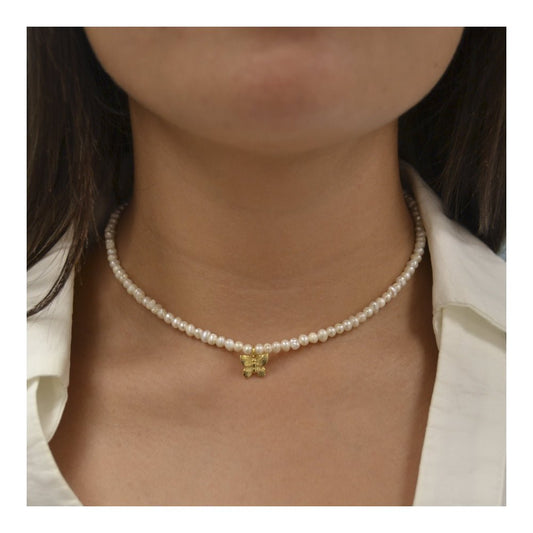 Gargantilla 'Butterfly' - Perlas con Amuleto de Mariposa