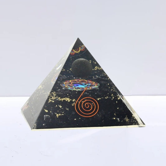 Pirámide Orgonita 'Spiralis' - Turmalina y Cuarzo Blanco