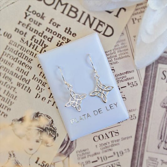 Pendientes Largos de Nudo de Bruja en Plata de Ley 925
