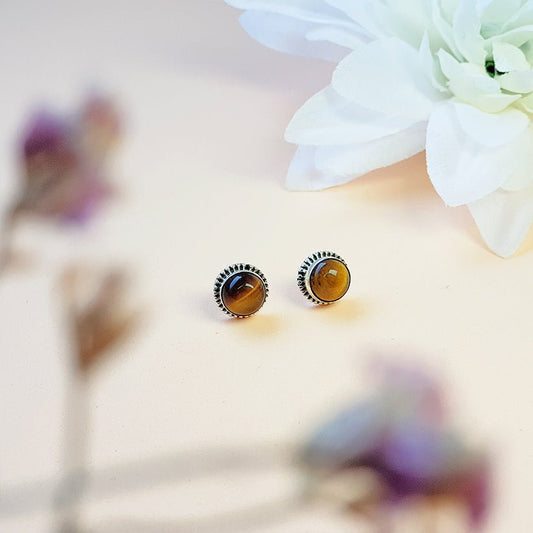 Pendientes Botón Ojo de Tigre y Plata de Ley 925