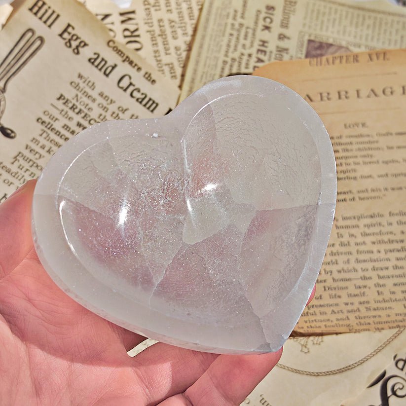Deja reposar tus minerales y/ joyas dentro del cuenco de selenita durante un día entero y su vibración limpiará y cargará en profundidad tus minerales devolviéndoles su vibración y energía positiva.