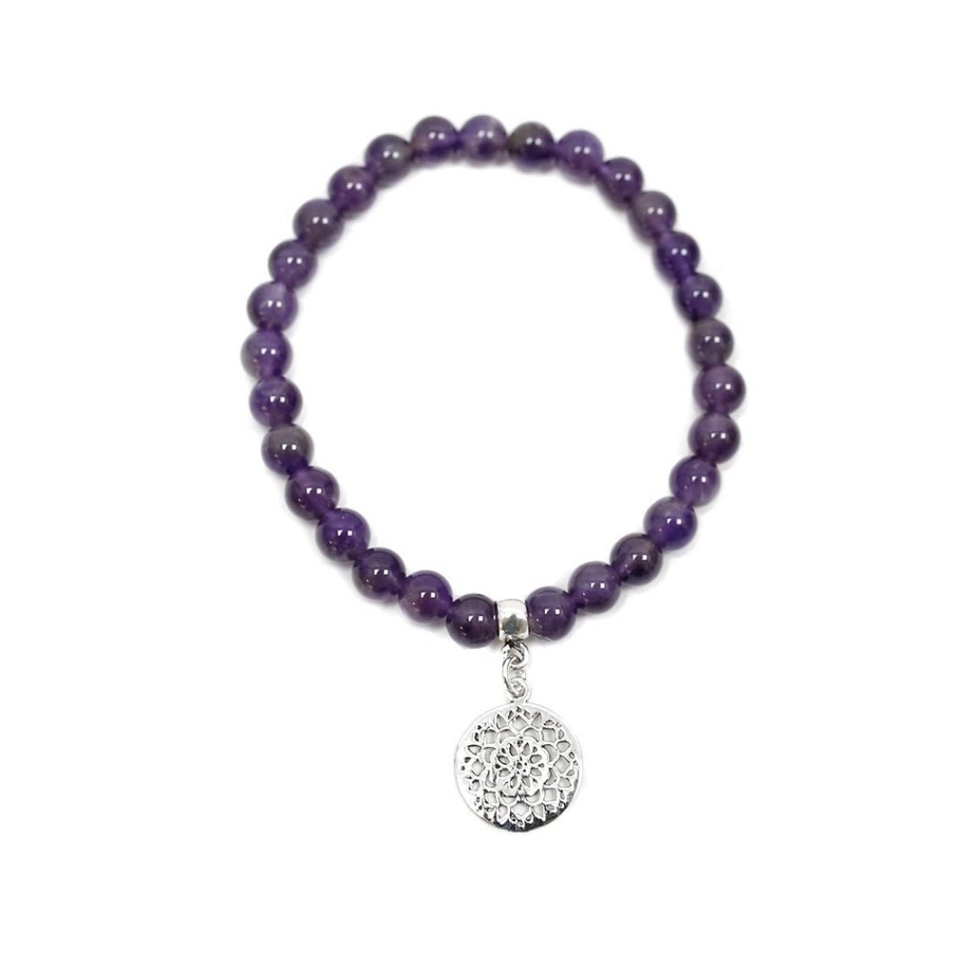 - Pulsera de Amatista y Amuleto de Mandala en Plata de Ley