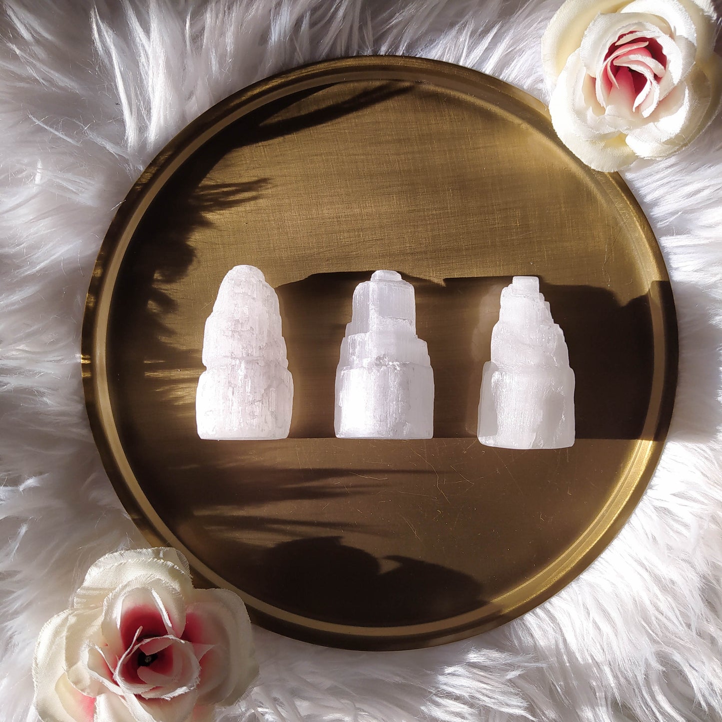 La Selenita o "Cristal de los Ángeles" es llamada así en honor a la Diosa Selene, por su resplandor etéreo igual al de la Luna. Encarna la tranquilidad, la bendición, el amor y la luz.