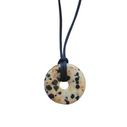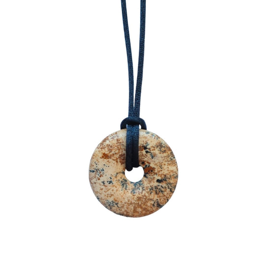 Descubre la belleza y energía de los colgantes en forma de donut con minerales naturales.