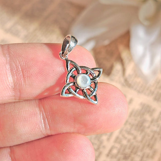 Colgante Nudo de Bruja y Nácar en Plata de Ley 925