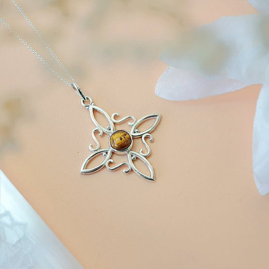 Colgante Nudo de Bruja en Plata de Ley 925 con Ojo de Tigre