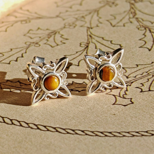 Pendientes Nudo de Bruja con Ojo de Tigre en Plata de Ley 925